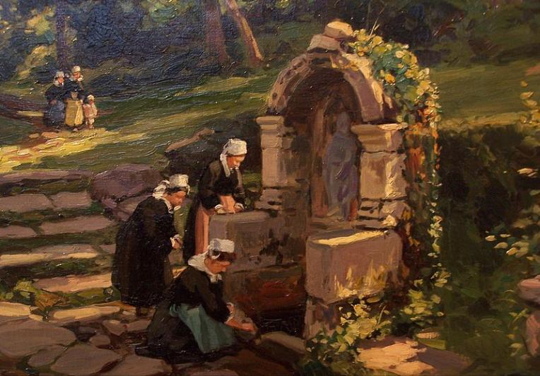 Breton women at the Sainte-Barbe fountain in Le Faouë, Henri Alphonse Barnoin